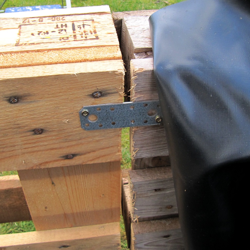 Das Bauen mit alten Paletten birgt immer wieder Überraschungen. Natürlich hatte ich alles geplant und ausgemessen. Und trotzdem ist dann plötzlich innen ein Ritz und außen lässt es sich nicht weiter zusammenschieben. Oder die perfekt geschnittene Teichfolie lässt sich nur schief befestigen, weil sie in der Ecke störrische Falten geschlagen hat. Ganz zum Schluss, als ich auf der Innenseite einen stabilisierenden Querbalken festschraube, merke ich, dass einer der Paletten genau an dieser Stelle ein Brett fehlt. Ja, so ist das, mit alten Materialien. Aber spätestens wenn das Hochbeet gefüllt ist, vor Salat überquillt oder von bunter Kapuzinerkresse überrankt wird, ist keine Rede mehr davon.