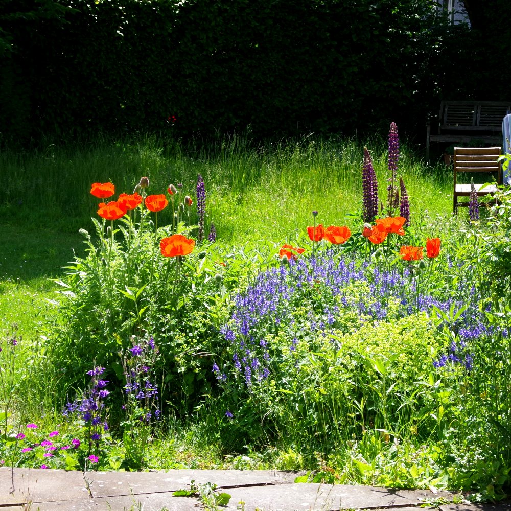 Schon am frühen Morgen leuchten die Holunderblüten in der Sonne. Ich sitze mit dem ersten Tee auf der Terrasse und genieße den Sommer. Wenn ich auf die Uhr schaue, sehe ich, dass früher Morgen übertrieben ist. Dennoch, für mich fühlt es sich so an. Es ist sonntäglich ruhig im Garten. An Wochentagen sind die Schulbusse jetzt schon die Straße bergan gerumpelt und es ist bereits wieder ruhig.