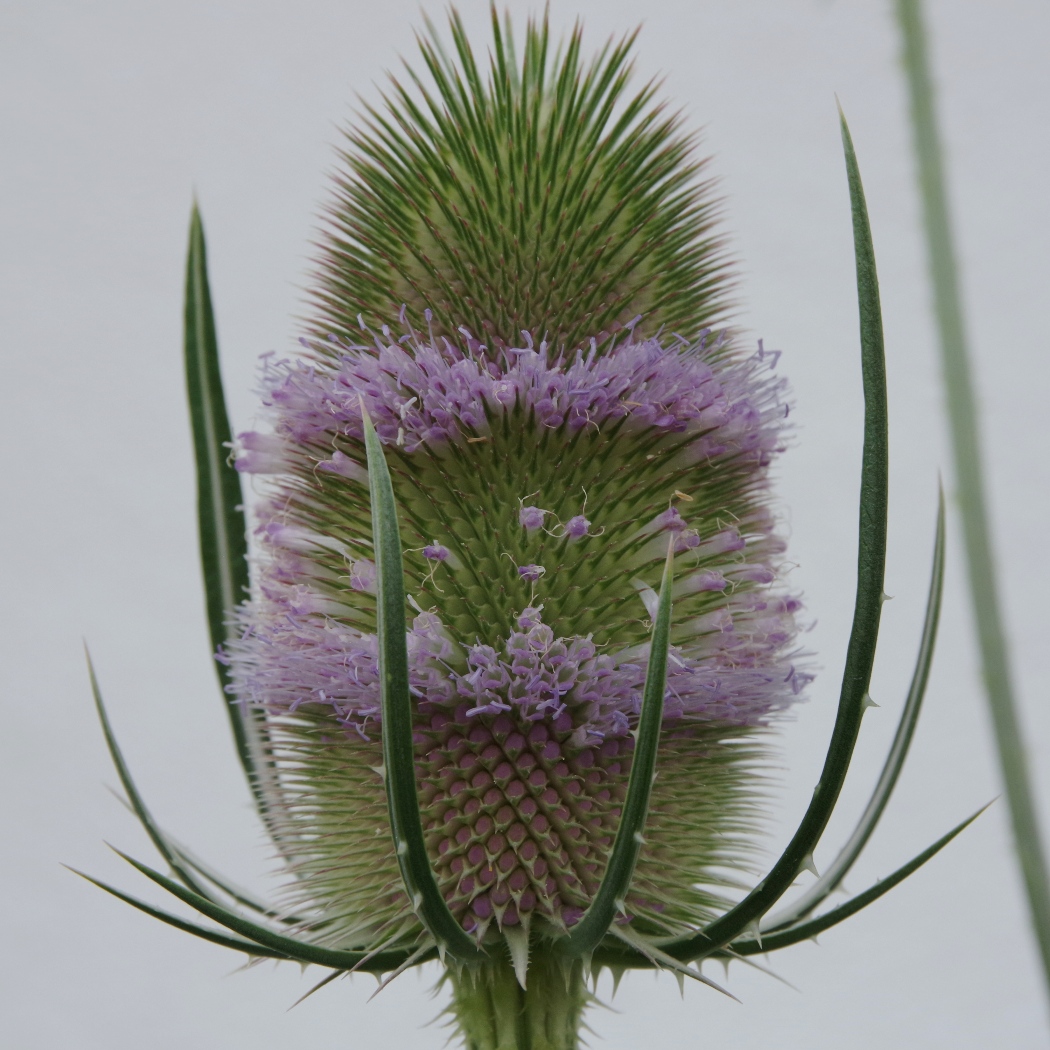Jetzt im Juli ist die Blütezeit der Wilden Karde. Die etwa zehn Zentimeter hohen, walzenförmigen Blütenstände blühen ringförmig. Die Blüte beginnt in der Mitte und wandert dann gleichmäßig nach oben und unten. Die Blüten sind sehr beliebt bei Insekten. Mit nur einem großen Topf kann ich Hummeln und Schmetterlingen eine weitere reichhaltige Futterquelle bieten. Das reicht mir als Argument, um nächstes Jahr wieder eine Karde zu haben.
