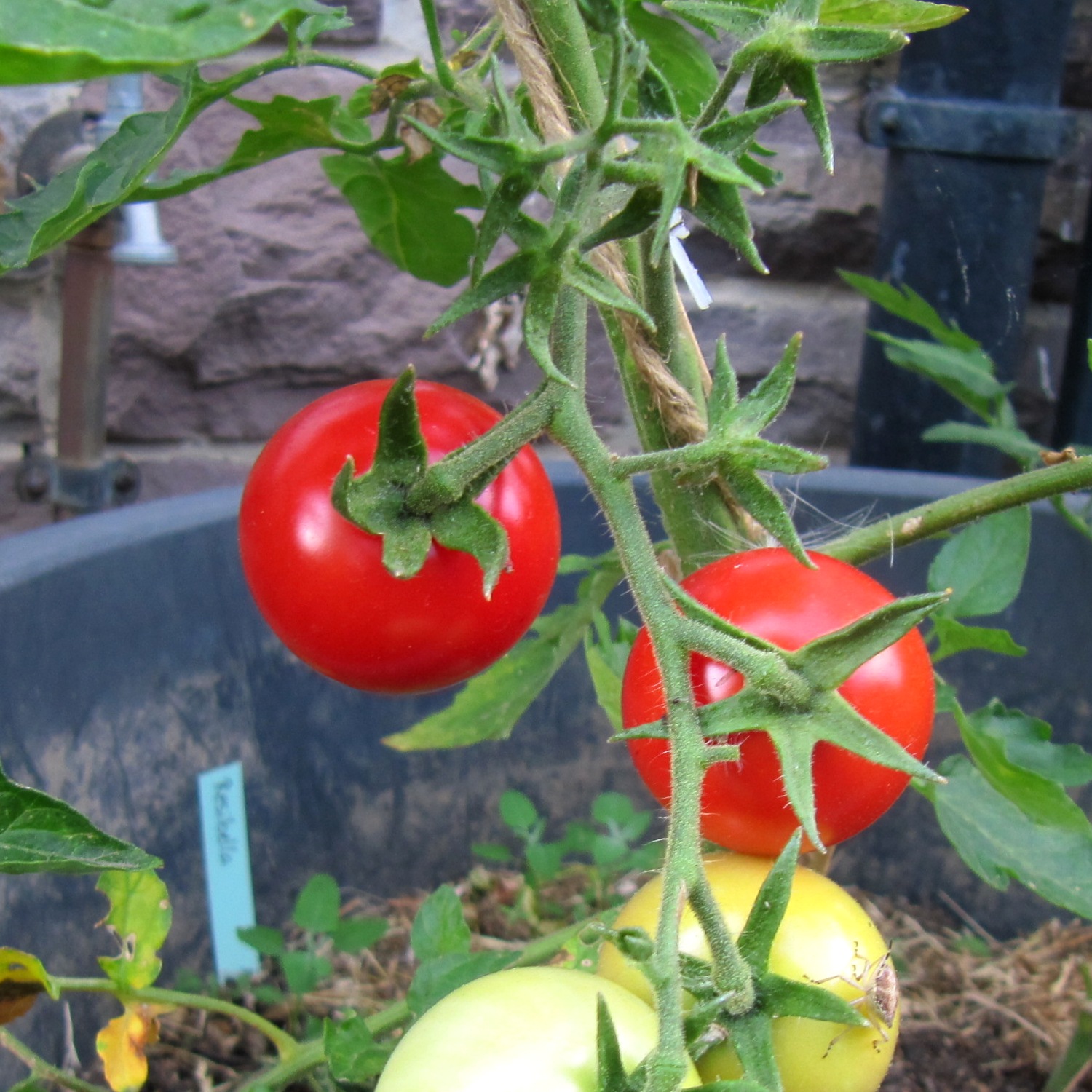 Jedes Jahr fiebere ich den ersten eigenen Tomaten entgegen. Heute habe ich die erste rote Tomate geerntet: Cocktailtomate Resibella.