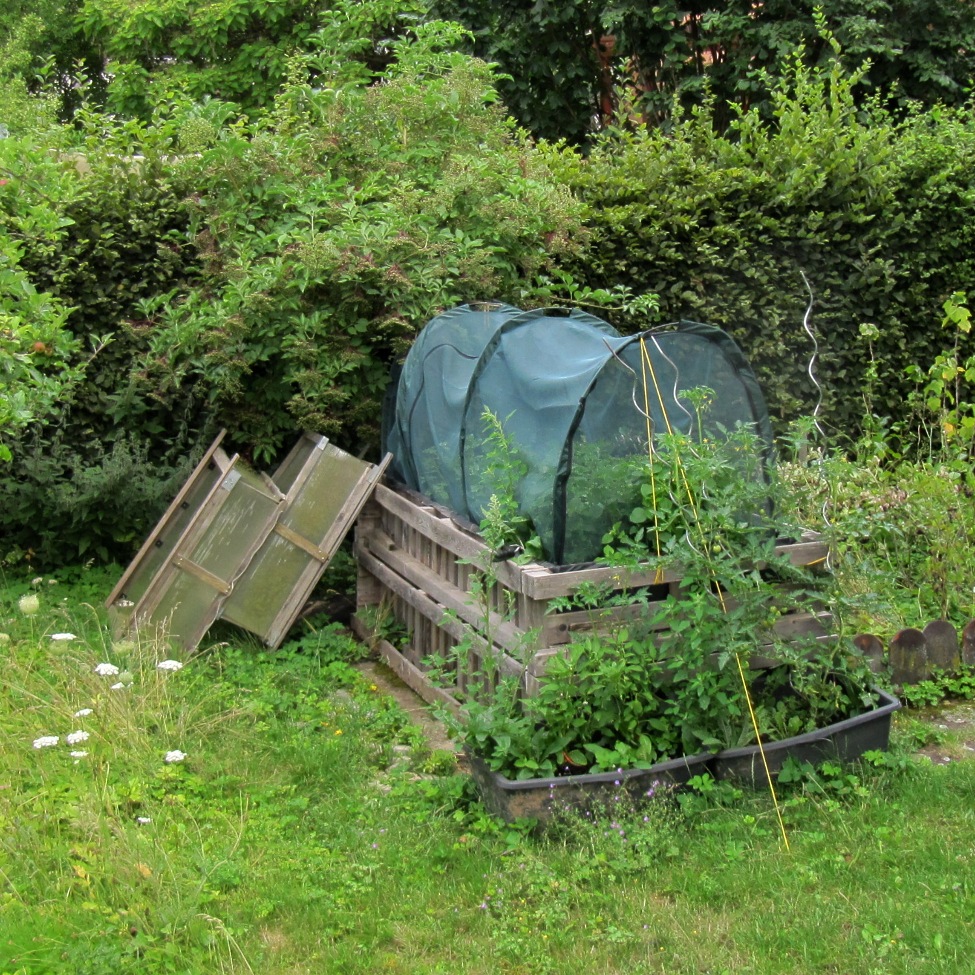 Bei allen selbstgefertigten Beispielen, die gefunden hatte, frage ich mich, wie es im nächsten Jahr weitergehen wird. Gelingt es mir, das Schutznetz so zu falten und lagern, dass es im nächsten Frühjahr wieder einsetzbar ist? Ebenso mit den häufig verwendeten Plastikrohren aus dem Baumarkt. Wie viele Winterfröste und Sonnenstunden hält solch ein für den Innenausbau gedachtes Rohr durch, bevor es zerbröselt?