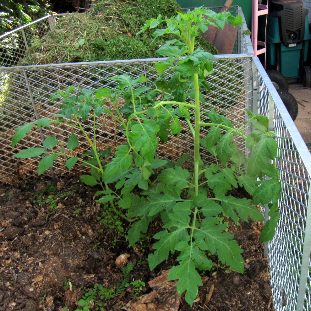 Mit Tomaten habe ich mittlerweile ziemlich viel Erfahrung. Solange es nicht dauerhaft regnet, habe ich eine verlässliche Ernte. So ziemlich überall in meinem Garten wuchsen schon einmal Tomaten. Oder es fielen überreife Früchte ab. Oder ich kompostiere die Pflanzen mit den letzten unreifen Früchten am Ende der Saison. Und an allen diesen Stellen finde ich im Laufe des Jahres neue Tomatenpflanzen. Gerade wachsen drei Tomaten in einem Kompost, der fast ausschließlich aus Holzschnitzeln besteht. Ich frage mich schon längere Zeit, ob diese Komposterde nicht zu sauer ist oder ein ungünstiges Verhältnis der nötigen Nährstoffe hat. Aber den Tomaten gefällt es dort.