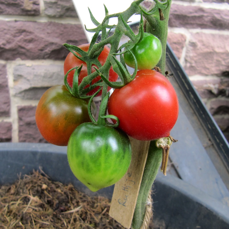 Ruthje: Sehr süße und aromatische Cocktailtomate. Ich hatte gehofft, Friesje sei recht ähnlich und die beiden könnten sich ergänzen. Leider ist dies bei mir nicht so. Friesje wächst sehr in die Höhe und die Tomaten lassen sich selbst dann schlecht ernten, wen sie vollreif sind.