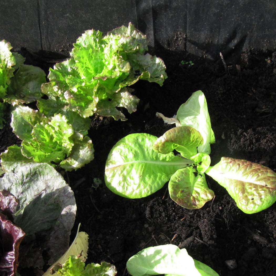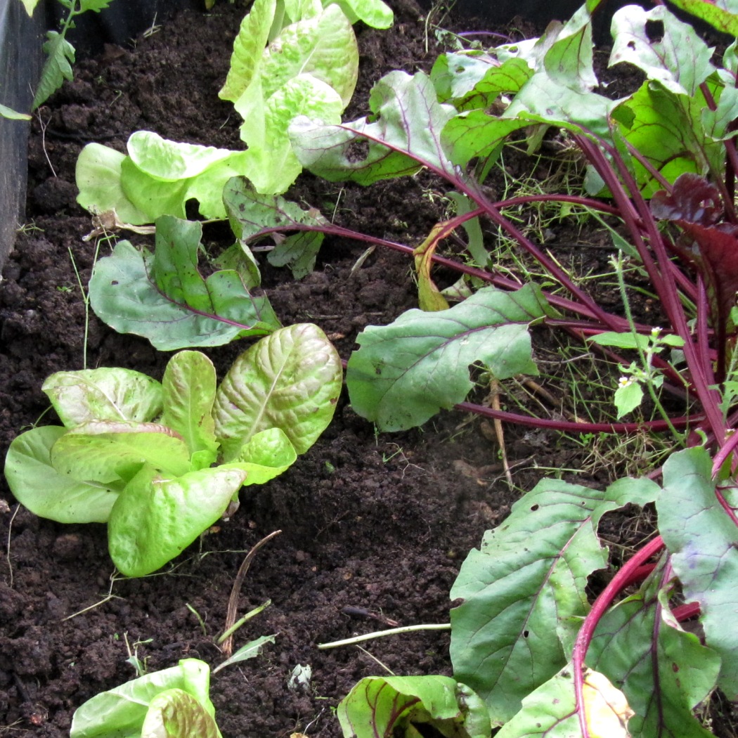 Jetzt ist endlich genug Platz, damit die Setzlinge von „Wintersalat“ und „Bunter Kaufunger“ vom Balkon ins Beet umziehen können. Sie bekommen die freien Plätze zwischen den letzten Radicchios, Batavias und Roten Bete. Eine bunte Mischung. Solange die Temperaturen nicht in die Nähe der Frostgrenze kommen, können auch die Sommerpflanzen noch im Beet bleiben.