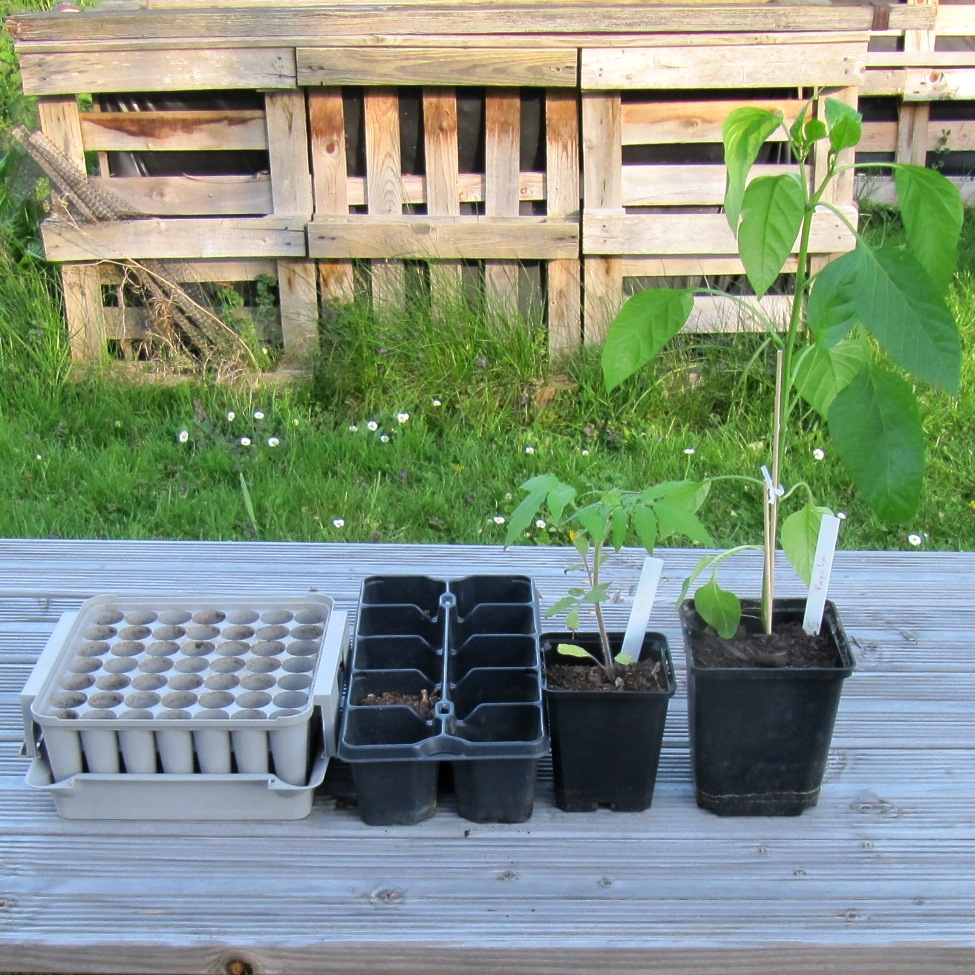 In diesem Jahr haben sich die Paprika-Pflanzen am besten entwickelt. Die gleichzeitig ausgesäten Chilis sind deutlich kleiner. Die meisten der Tomaten sind noch in den kleineren der Einzeltöpfe. Muss ich wirklich noch einmal umtopfen oder ist der nächste Schritt nun endlich der Garten?