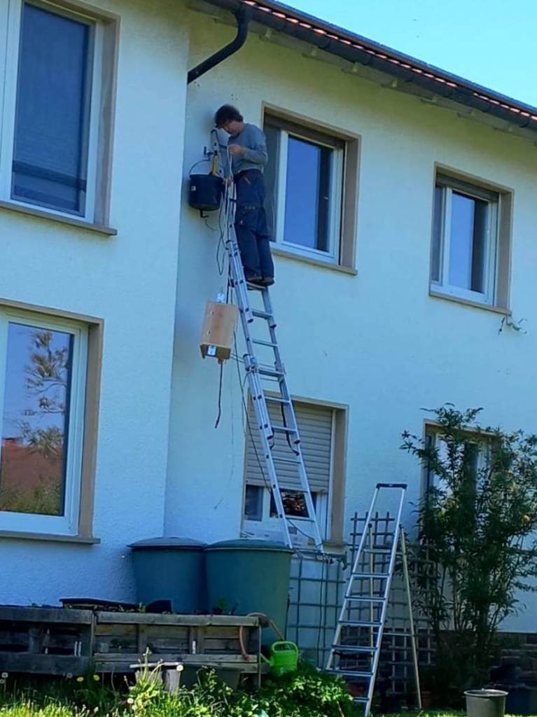 Durch Renovierungen gehen oft Nistmöglichkeiten für Mauersegler und andere Nischenbrüter verloren. Ich habe deshalb schon länger vor, zusätzliche Nistkästen anzubringen. Aber Nistkästen für Mauersegler sollen möglichst in 6 Metern Höhe sein. Das Haus ist zwar hoch genug und hat sogar einen Dachüberstand auf der richtigen Seite, doch wie komme ich in diese Höhe und schaffe es dort Löcher in die Wand zu bohren? Von örtlichen Naturvereinen und anderen Institutionen bekomme ich entweder nur theoretische Tipps oder gar keine Antwort.