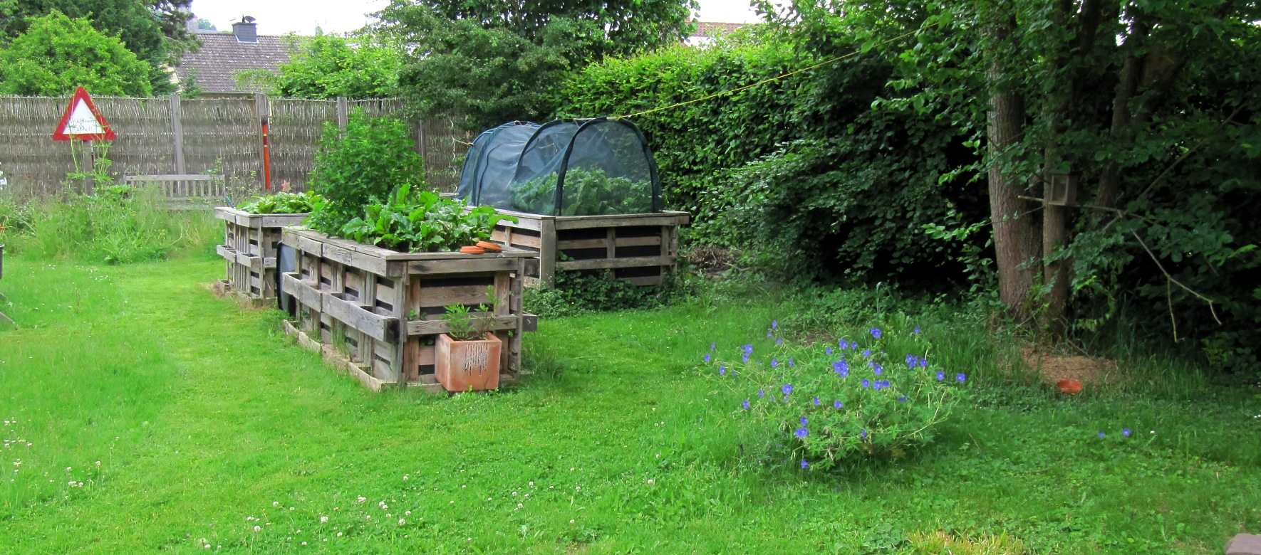 Eine Wegwarte, die am Hochbeet wächst. Oregano, der sich selbst am Fuß des Apfelbaums ausgesät hat. Weshalb sollte ich beide abmähen, ausstechen oder auf andere Zeit und Kraft investieren, um eine freundliche Pflanze zu verjagen? Im eigenen Garten lässt sich die Artenvielfalt allein durch Nichtstun unterstützen. Anstatt Arbeit in die Monokultur Rasen zu investieren, freue ich mich über neue Blüten und Pflanzen, die sich selbst einen Platz suchen. Manche der wilden Ecken bleiben das ganze Jahr über stehen. Manche nur ein paar Wochen.