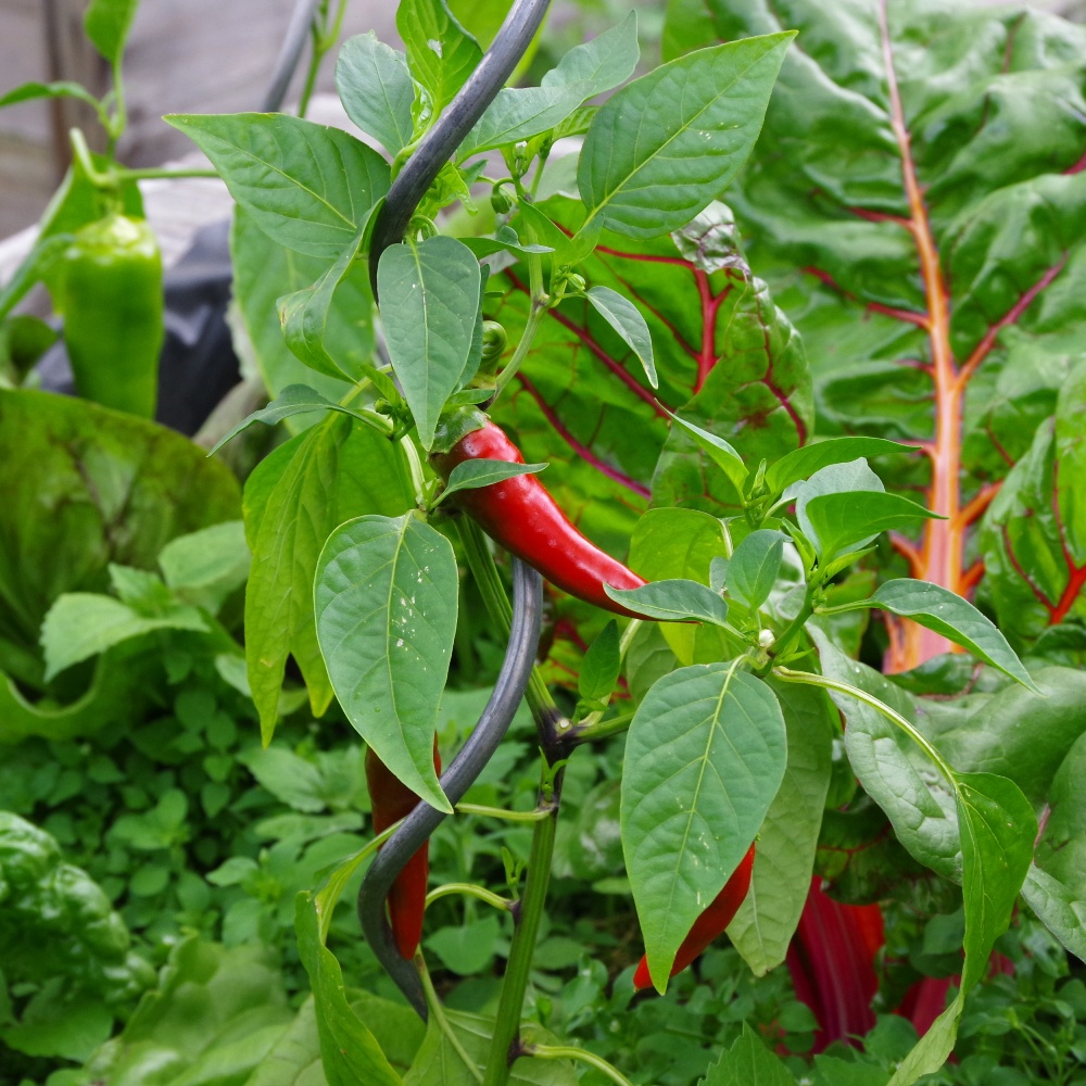 Chili und Zucchini stehen dieses Jahr im Hochbeet. Chili und Paprika vertragen auch mal Regen. Die trockenen Plätze sind deshalb für Tomaten und Auberginen reserviert. Die Auberginen wachsen problemlos vor sich hin. Recht geruhsam, wie ich finde. Vielleicht war es ihnen im Mai auch nicht warm genug.