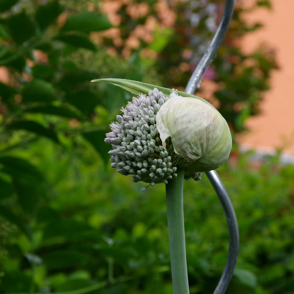 Seit einigen Wochen beobachte ich die Knospe eines Lauchs. Ein ganz normaler Gemüselauch, der den Winter überstanden hat und im späten Frühling anfing zu knospen.