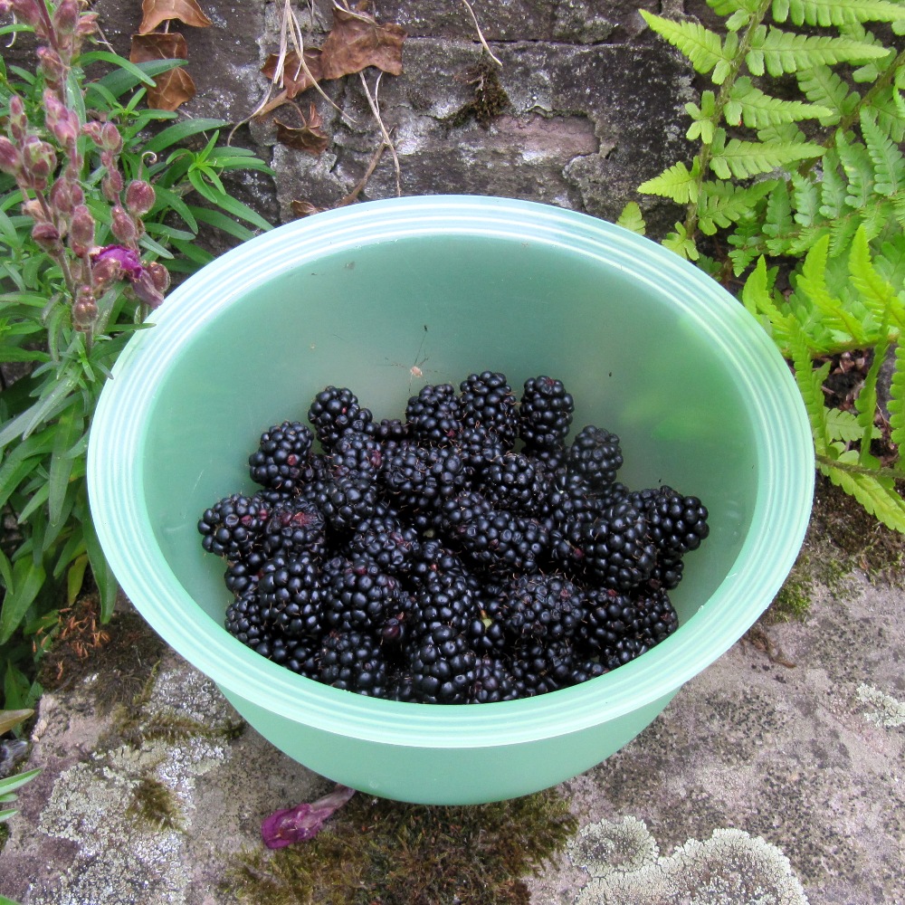 Die heutige Ernte fällt recht klein aus. Zumindest im Vergleich zum Anblick der übervollen Triebe. Ich habe gelesen, dass man nur diejenigen Früchte ernten soll, die sich leicht pflücken lassen. Viele Beeren sind zwar schwarz, hängen aber noch fest an den Trieben. Nach und nach kann ich nicht nur fühlen, sondern auch sehen, welche Beeren reif zu Ernte sind. Erntereif sind die Beeren dann, wenn sie ihr glänzendes Schwarz wieder verlieren und mattschwarz sind.