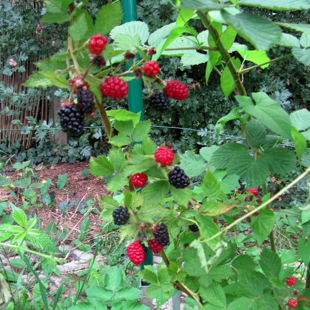 Ich kenne Brombeeren bisher nur als unkontrollierbares Gewirr von immer länger werdenden Trieben, die alles, was irgendwie in der Nähe ist als Rankhilfe missbrauchen. Daher bin ich auf der Hut und hoffe sehr, den Zustand der undurchdringlichen Dornröschenhecke zu vermeiden. Bisher ist der Plan, im Herbst alle abgeernteten Triebe zu entfernen. Es sieht dann wahrscheinlich wieder aus wie frisch gepflanzt. Mal sehen, ob der Plan sich auch umsetzen lässt – und ob die Brombeeren nächstes Jahr wieder tragen.