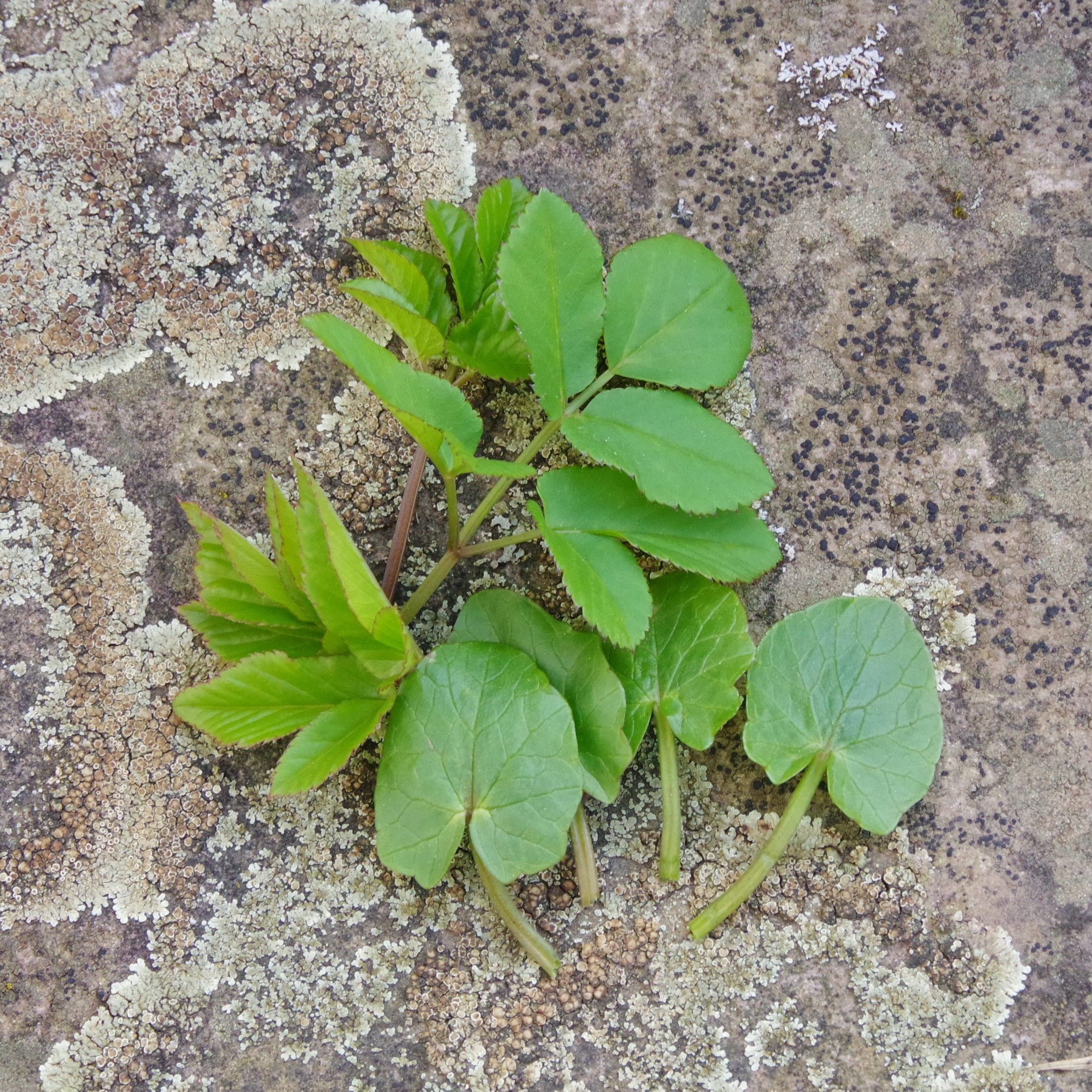 Ich finde die ersten Polster mit Scharbockskraut und junge Gierschspitzen. Das Scharbockskraut duckt sich noch sehr auf den Boden. Wenn die Temperaturen so warm bleiben wie in den letzten Tagen, wird es sicher bald blühen. Das ist zwar ein schöner Anblick, aber man soll die Blätter dann nicht mehr essen. Der Giersch wird dafür umso kräftiger wachsen. Davon gibt es dann bald reichlich.