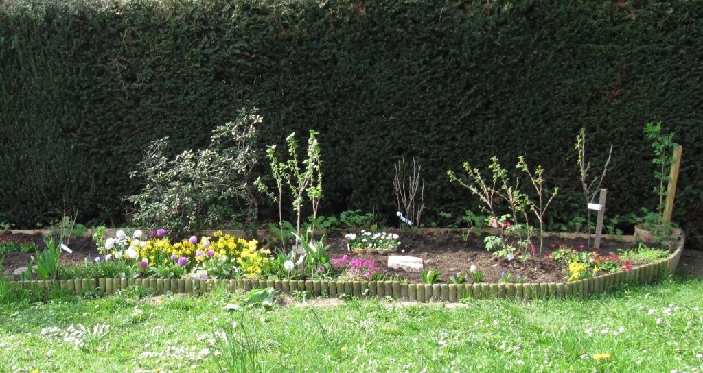 Eine verwilderte Blumenrabatte habe ich in einen Obstgarten mit acht Schwarzen Johannisbeer-Büschen verwandelt.