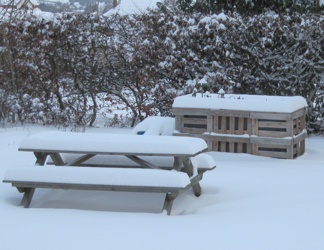 10. Januar: Schnee auf den Beeten